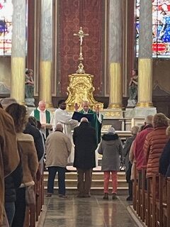 Ce dimanche, à l’église Saint-Louis, la messe dominicale a été marquée par un temps fort : les Pères Martin, Salin et Bigot ont béni et envoyé en mission les bénévoles et membres du Service Évangélique des Malades (SEM).