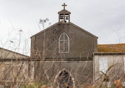 Insérée entre deux maisons, la chapelle présente une façade modeste, avec une porte encadrée de pierres claires. À l’intérieur, un autel simple, quelques bancs, et une statue du Sacré-Cœur de Jésus rappellent l’essence de la prière : la confiance et l’amour.