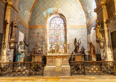 Seul le clocher, majestueux, a survécu aux démolitions successives. Construit en 1768, il offre un contraste harmonieux avec la sobriété néo-classique de l’église actuelle, œuvre de l’architecte municipal Félix Garde.