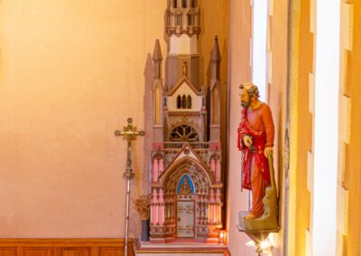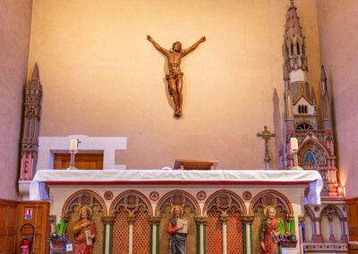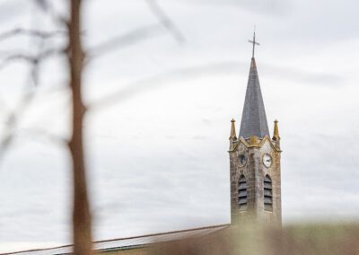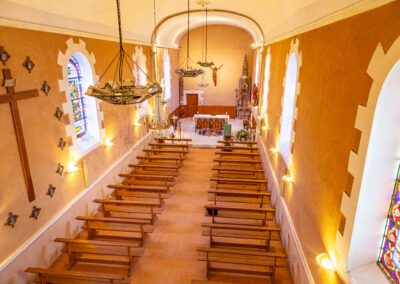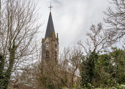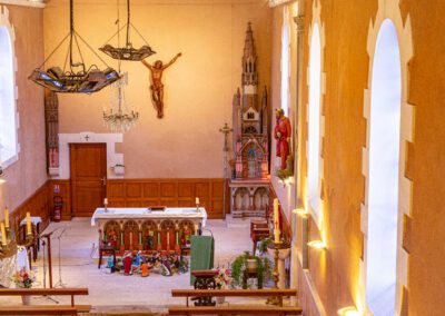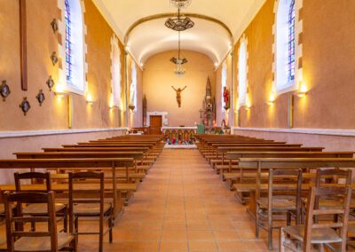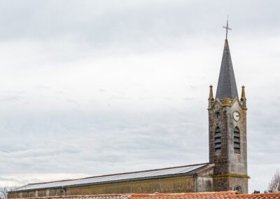 L’église présente une architecture sobre et élégante, typique des constructions religieuses rurales du XIXe siècle. Son clocher élancé domine le paysage environnant, servant de repère aux fidèles et visiteurs.